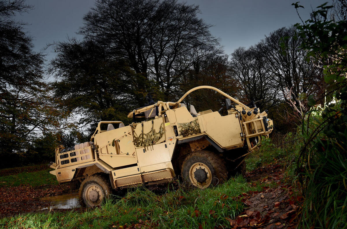 What is disconcerting initially is having the front axle beneath you, rather than in front of you, which can encourage an unintended early turn-in. Still, we hit the autumn-shrouded woodland, complete with an unrelieved carpet of leaves, at which point my guide and Supacat veteran Andy Roberts told me: “Floor it”.